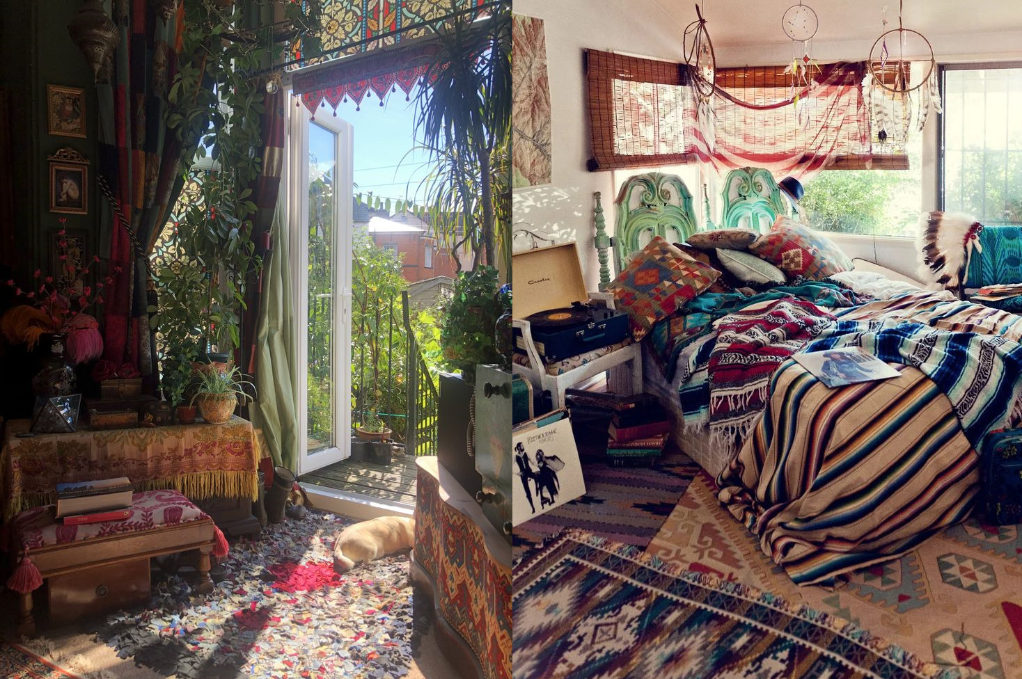 На фоне антивоенного движения 60-х апостолы битников выступали против пуританской морали, отвергали материализм и призывали к миру, гармонии и единству с природой. Эти ценности перетекли в интерьер, который зиждется на эклектике стилей, природной цветовой палитре, натуральных материалах, этнических мотивах и ощущении вечного оттяга.